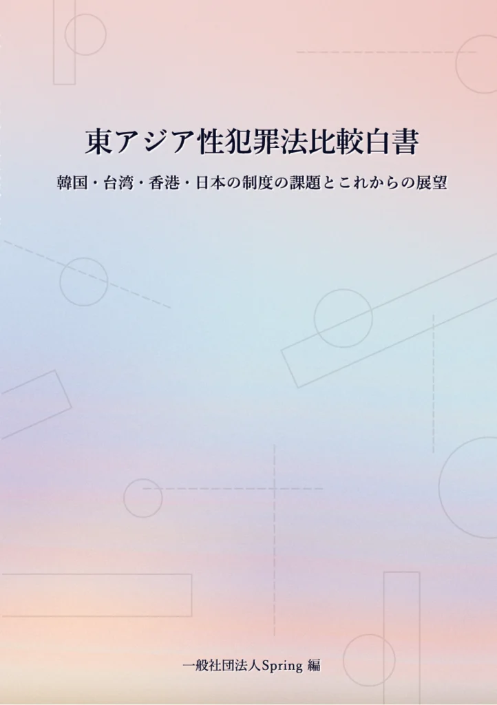集会の最後には、Springが取りまとめた『東アジア性犯罪法比較白書』が発表されました。本白書は、韓国・台湾・香港・日本の4地域を対象に、「公訴時効」「YMY型規定」「デジタル性暴力規制」の3テーマを多角的に比較・分析したもので、今後の日本の制度改革の基礎資料となることを目指しています。